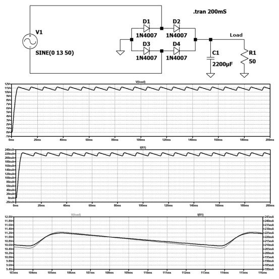 · 13 V AC正弦電壓源(V1)。實(shí)際上,它是 230 V AC至 13 V AC的電壓變壓器。頻率為 50 Hz