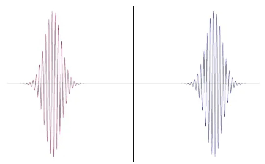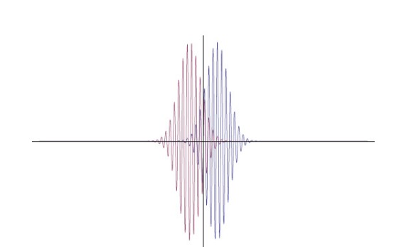 圖 4:描述半導(dǎo)體或半金屬中電荷載體運(yùn)動(dòng)的一對(duì)波包傳播的一維理想化圖。波包之間互不干擾
