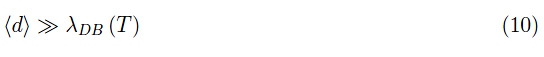 其中 ? d ? 是粒子之間的平均距離,而λ DB ( T ) 是粒子的德布羅意熱波長,即與溫度成反比的特征長度。換句話說,經(jīng)典極限是粒子間平均距離的“小” λ DB 的極限。這意味著稀薄氣體和/或高溫。然而,λ DB 也是描述粒子運(yùn)動(dòng)的波包的平均波長。因此,在波長較小的極限下,相應(yīng)的波包不會(huì)重疊,粒子的行為也符合經(jīng)典規(guī)律。否則,就會(huì)產(chǎn)生單個(gè)波包的疊加,從而失去粒子的可區(qū)分性,最后一種情況通常是量子的。