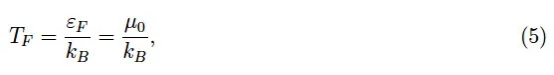 如果我們將氣體加熱到略高于零的溫度,ε接近ε F 的粒子將具有足夠的能量移動(dòng)到能級(jí)ε > ε F 。這可以通過對(duì)T = T ? > 0進(jìn)行 (4) 函數(shù)研究從數(shù)學(xué)上看出。在使用Mathematica繪制圖形之前,我們必須擺脫未知函數(shù)μ ( T )。為此,我們定義費(fèi)米溫度: