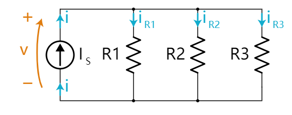 當(dāng)前的電源Is將 電流i輸入R1,R2和R3。 我們知道 電流i的值是給定的常數(shù),但我們不知道 電壓v和電流i是如何被分配到3個電阻上的。