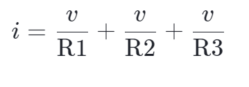 這個表達(dá)式看起來像歐姆定律,v=iR,,但并聯(lián)電阻部分以一個雙倒數(shù)的形式代替了單個電阻。