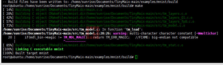cd到examples/mnist目錄下 使用mkdir build && cd build 命令切換到build文件夾下