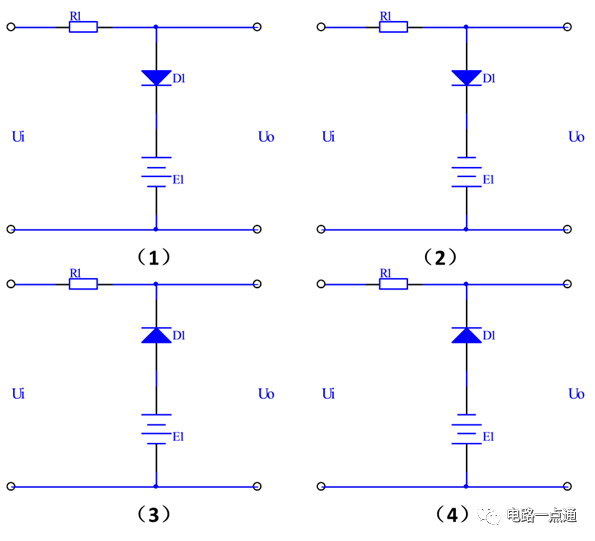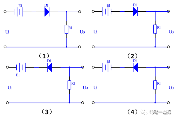 以圖1(1)的電路來分析,Ui輸入信號是正弦波,當(dāng)Ui>V F -E1時二極管導(dǎo)通,輸出U O =Ui+E1-V F 。