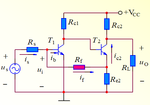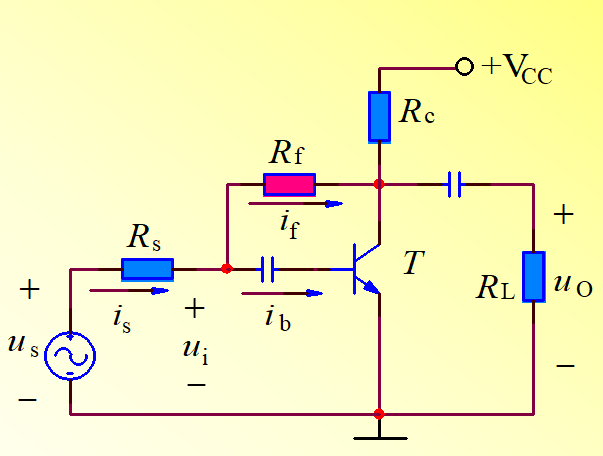 3:按照圖1的規(guī)則,Rf兩端的電壓極性相反(基極與集電極),所以為負反饋。