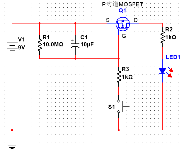下圖是一個由 RC 電路和 P 溝道場效應(yīng)管組成的延時關(guān)機電路: