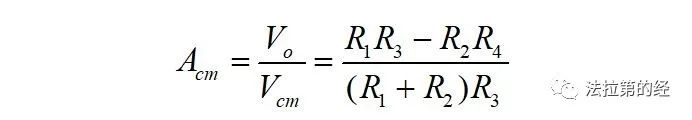 當(dāng)電路輸入共模型號即Vcm=V1=V2時共模增益Acm為