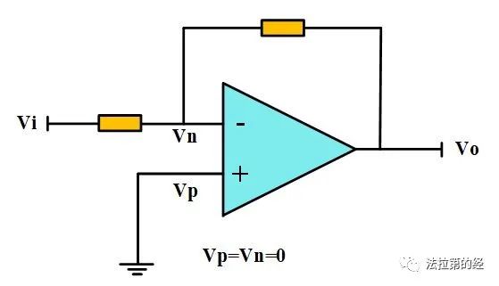 理解共模差模信號后我們?nèi)菀装l(fā)現(xiàn)反向輸入端運放幾乎不存在共模信號問題。如圖2的反向比例放大電路,由于Vp已經(jīng)接地且運放正常工作時處于深度負(fù)反饋狀態(tài)所以Vn=Vp=0,可見此時運放的兩個輸入端電壓與地不存在電勢差所以也不會有共模電壓問題。