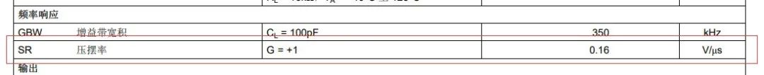 因此在運(yùn)放的數(shù)據(jù)手冊中查到的壓擺率的單位是V/us。下表就是運(yùn)算放大器datasheet中標(biāo)出的運(yùn)放的壓擺率(SR)。