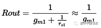 當(dāng)沒有M1時,MOS漏極視入阻抗就是ro2。也就是說,一個MOS從漏極看進(jìn)去的等效電阻就是與溝道長度調(diào)制效應(yīng)有關(guān)的輸出電阻。這正好驗證了M1等效電阻為ro1的假設(shè)是成立的。