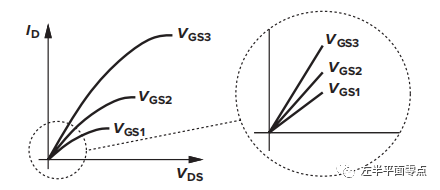 ID與VDS呈線性變化,MOS相當(dāng)于一個線性電阻。MOS在不同的VGS,其等效電阻也不同。
