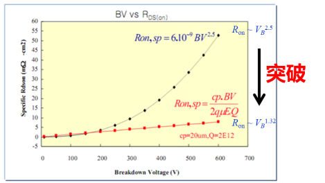圖:超結MOSFET突破常規(guī)VDMOS硅限