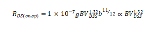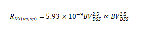 對于超結VDMOS的比導通電阻與擊穿電壓的關系,可由下式表示: