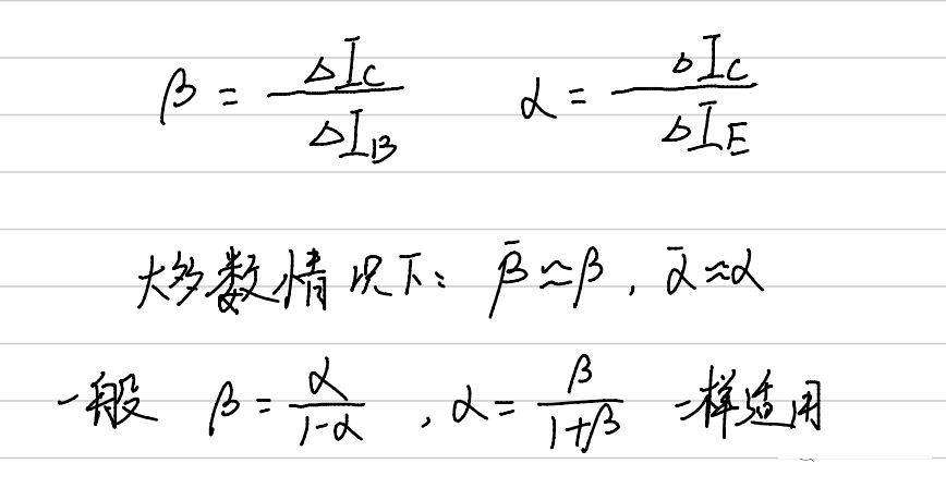 4、共射極交流放大系數(shù)β與共基極交流放大倍數(shù)α: