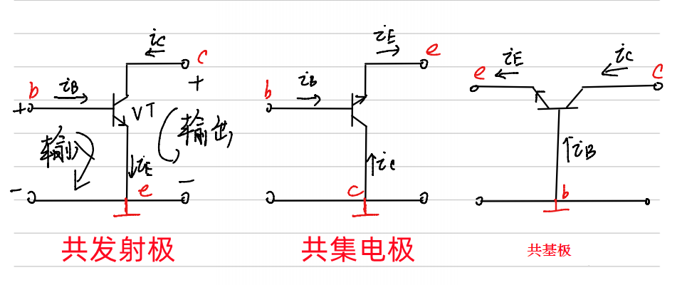 3、三極管的三種連接方式:(一個電極輸入、一個電極輸出、一個作為公共端)