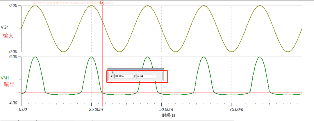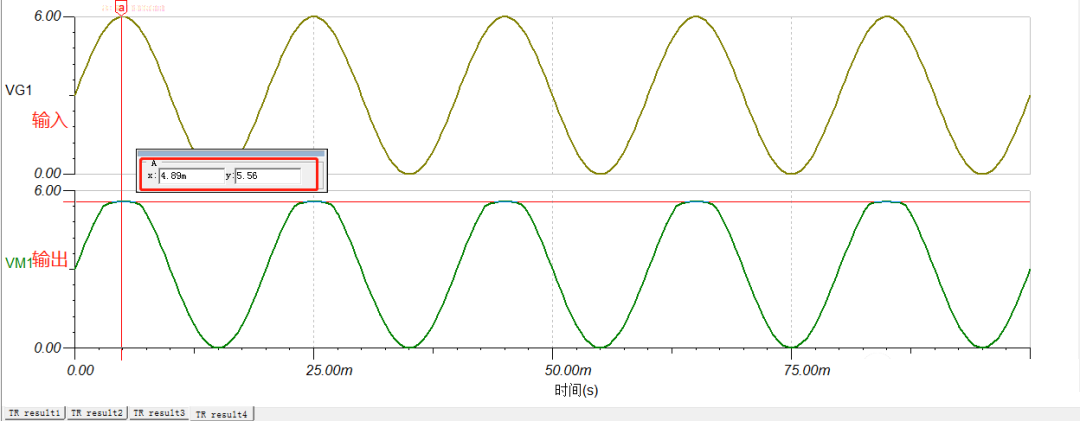 2、VS 為直流電平 6V時(shí),看下此時(shí)輸出電壓: