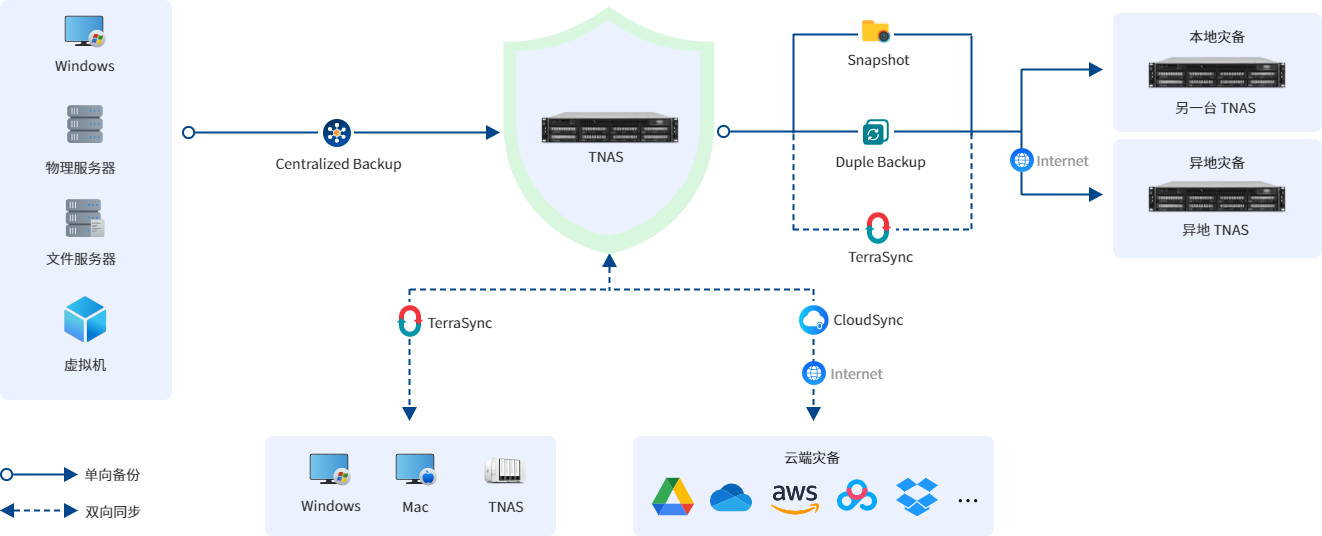 在數(shù)據(jù)安全方面,鐵威馬F4-424 Pro提供了BBS(Business Backup Suite)全場(chǎng)景備份解決方案,確保企業(yè)數(shù)據(jù)萬無一失。其核心功能有Centralized Backup、雙重備份、Terrasync、Cloudsync等多種備份方式,滿足不同場(chǎng)景下的備份需求。特別是其雙重備份和TFM Backup功能,能夠?qū)崿F(xiàn)遠(yuǎn)程多設(shè)備、多任務(wù)的增減量備份,確保在設(shè)備崩潰或數(shù)據(jù)丟失時(shí)能夠迅速恢復(fù)。此外,Centralized Backup集中式主動(dòng)備份解決方案更是將備份工作自動(dòng)化,管理員只需通過軟件從服務(wù)器端發(fā)起備份請(qǐng)求,即可實(shí)現(xiàn)對(duì)企業(yè)內(nèi)部所有員工電腦、工作站、服務(wù)器及虛擬機(jī)的全面?zhèn)浞?大大提高了數(shù)據(jù)保護(hù)的便捷性和效率。