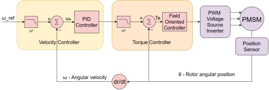 速度控制器(外環(huán)) 控制電動機(jī)的速度,與內(nèi)循環(huán)相比,運(yùn)行更慢。當(dāng)一個目標(biāo)值,例如一個特定的電機(jī)速度,被設(shè)置為這個循環(huán),它的輸出級聯(lián)下降,成為內(nèi)環(huán)的參考,表示所需的扭矩。這種分層結(jié)構(gòu)確保系統(tǒng)反應(yīng)更快,并加強(qiáng)其對抗干擾的能力。