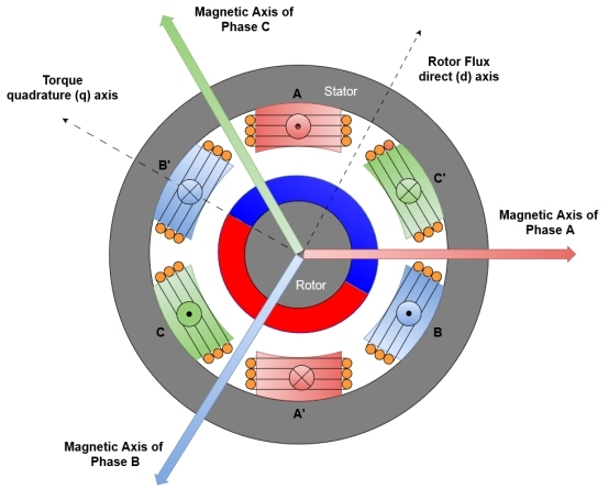 通過將三相ABC參考框架轉(zhuǎn)換為DQ協(xié)調(diào)系統(tǒng),FAC在電動機(jī)控制方面提供了一個重大飛躍。這種變換為兩個軸上幾乎均勻的磁場鋪平了道路。結(jié)果是什么?一種系統(tǒng),可以促進(jìn)在兩個DQ方向的電流的獨(dú)立控制,類似于保持速度的電機(jī),與定子繞組引起的磁場同步。