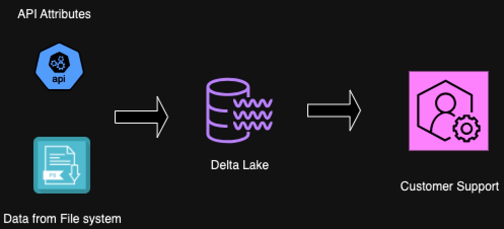 為了更深入地研究這些工具中每個(gè)工具的概念,我們將考慮一個(gè)定義了工作流的數(shù)據(jù)結(jié)構(gòu)。在本例中,我們有一個(gè)客戶(hù)實(shí)體表示為一個(gè)表,其中的屬性來(lái)自一個(gè)文件系統(tǒng)和一個(gè)API。