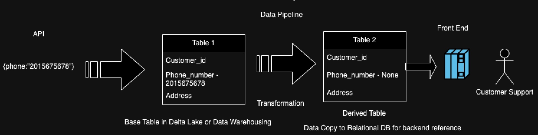 為了簡(jiǎn)化,可以考慮一個(gè)場(chǎng)景customer_type A 電話(huà)號(hào)碼是通過(guò)API獲得的,而地址詳細(xì)信息則來(lái)自于一個(gè)文件系統(tǒng)。為了再次強(qiáng)調(diào)原來(lái)的挑戰(zhàn),電話(huà)號(hào)碼在最終的客戶(hù)支持平臺(tái)上丟失了。從數(shù)據(jù)分類(lèi)的角度來(lái)看,數(shù)據(jù)工程師需要在眾多數(shù)據(jù)管道和數(shù)據(jù)表中追蹤電話(huà)號(hào)碼的來(lái)源,首先找到這個(gè)電話(huà)號(hào)碼屬性的來(lái)源,并了解它的血統(tǒng)。