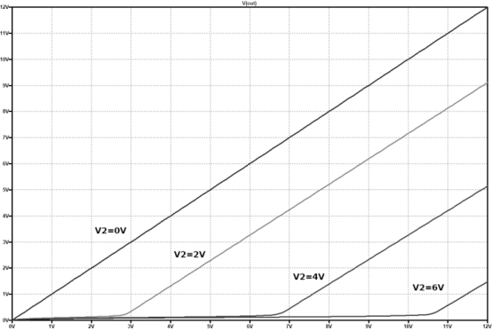 · 表示將對(duì)參數(shù)V2進(jìn)行電壓掃描。掃描從0V開(kāi)始,到6V結(jié)束,電壓增量為2V。處理了4個(gè)值(0V、2V、4V和6V)。