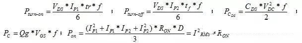 備注:為上升時(shí)間, 為開關(guān)頻率, 為下降時(shí)間,為柵極電荷,為柵極驅(qū)動(dòng)電壓 為MOSFET體二極管損耗。