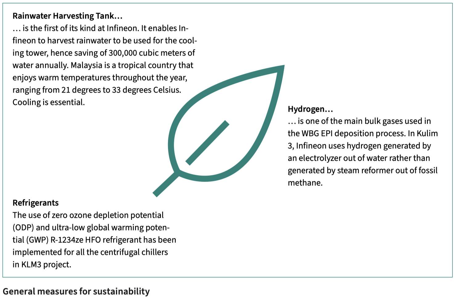 英飛凌不僅在居林工廠實現(xiàn)綠色能源100%采購使用,而且在能源利用過程中也盡可能提高效率,實現(xiàn)熱能和水資源的高效回收。英飛凌一方面結(jié)合地理位置優(yōu)勢,通過雨水收集池來積累工業(yè)用水。另一方面,通過電解器從水中產(chǎn)生氫氣,而不是蒸汽重整器從化石甲烷中產(chǎn)生的氫氣(這些氫氣將用于WBG EPI沉積工藝)。此外,居林工廠所有的電力驅(qū)動裝置都是變速驅(qū)動裝置,添加了熱回收系統(tǒng),以將工廠的能源損失降至最低。