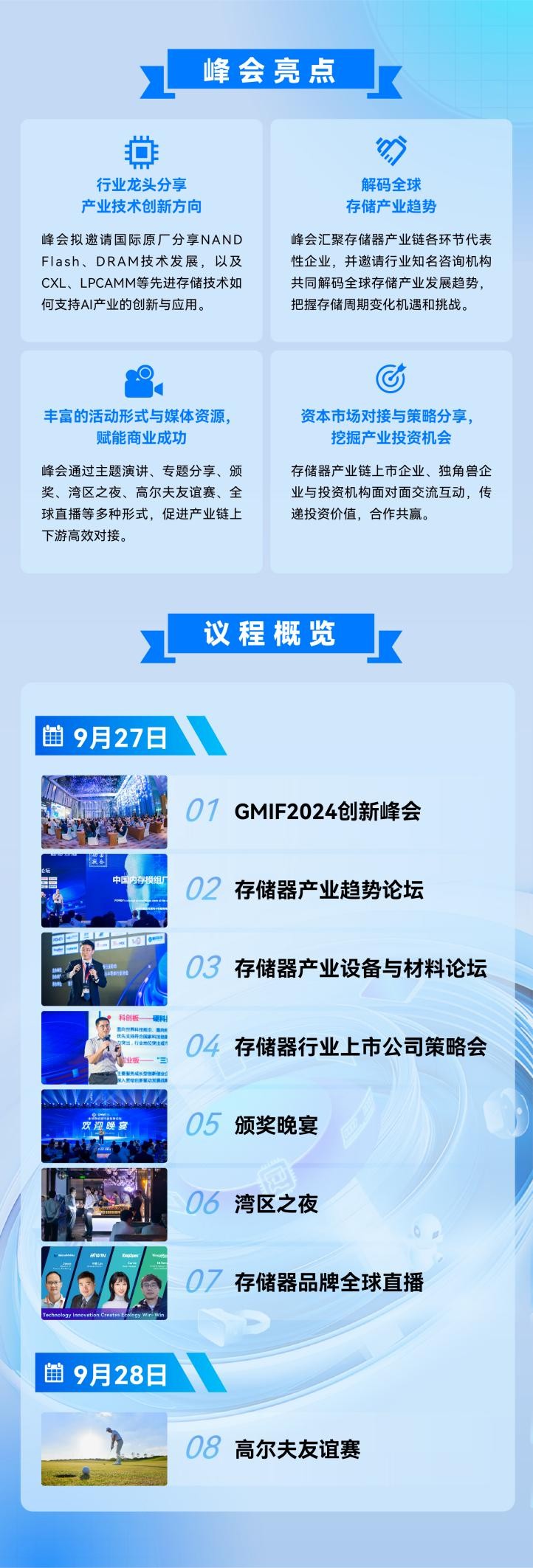 2024年9月27日,由半導體投資聯(lián)盟、深圳市存儲器行業(yè)協(xié)會主辦,廣東省集成電路行業(yè)協(xié)會、深圳市半導體行業(yè)協(xié)會協(xié)辦,愛集微咨詢(廈門)有限公司、海通證券股份有限公司承辦的“第三屆GMIF2024創(chuàng)新峰會(Global Memory Innovation Forum)”將在深圳灣萬麗酒店舉辦。峰會以“AI驅(qū)動,存儲復蘇”為主題,將匯聚存儲器產(chǎn)業(yè)鏈的終端廠商、原廠、平臺廠商、主控廠商、模組廠商、封測廠商、設(shè)備廠商、材料廠商等頭部企業(yè)、上市公司以及本土代表性企業(yè),通過主題演講、資本市場對接與策略分享、存儲器品牌全球直播、展覽等多種形式,圍繞存儲器市場復蘇與AI新興應用市場帶動下的產(chǎn)業(yè)格局與趨勢,分享前沿技術(shù)與最新產(chǎn)品,探討產(chǎn)業(yè)鏈上下游如何協(xié)同創(chuàng)新,構(gòu)建合作共贏的產(chǎn)業(yè)生態(tài)。