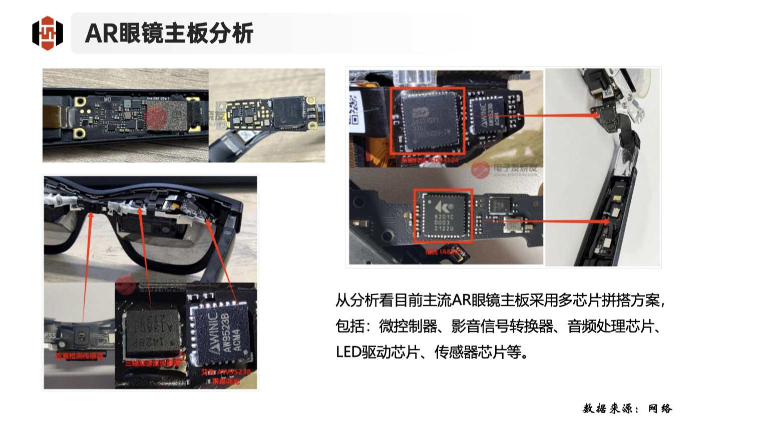 AR主控芯片方案主要分為多芯片拼搭式和單芯片集成式兩種。多芯片拼搭方案通過將多個(gè)不同功能的芯片組合在一起,雖然在一定程度上增加了PCB面積和功耗,但能夠靈活應(yīng)對(duì)復(fù)雜的計(jì)算需求。而單芯片集成方案則將多個(gè)功能模塊集成在一塊芯片上,更加注重芯片方案的小型化,主要應(yīng)用于輕量化、追求極致輕便的消費(fèi)級(jí)產(chǎn)品,如部分AR整機(jī)企業(yè)采用的消費(fèi)級(jí)芯片(如手機(jī)芯片或AIoT芯片)作為階段性替代方案。