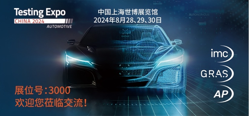 2024 年 8月28日至30日——AxiometrixSolutions工業(yè)測(cè)試集團(tuán)旗下制造商imc/GRAS/AP,將聯(lián)合參加在上海世博展覽館1號(hào)館舉辦的汽車測(cè)試及質(zhì)量監(jiān)控博覽會(huì)(中國 2024),展位號(hào)3000。