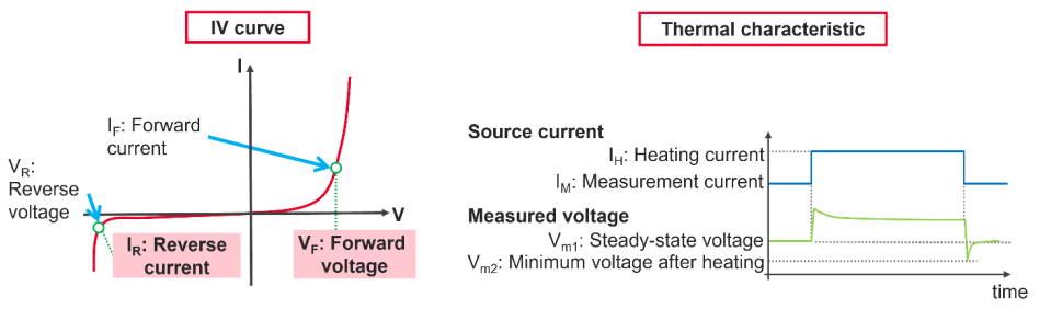 在開發(fā)或制造 LED 時,了解其電氣、光學和光-電流-電壓 (LIV) 特性對確保最佳性能和功能至關重要。了解電氣特性可確保 LED 在規(guī)定的電壓和電流范圍內(nèi)工作,這對電路設計至關重要。反之,光學特性則有助于深入了解發(fā)光的質量,包括亮度、色彩精度和分布。LIV 特性為了解光輸出、電流和電壓之間的關系提供了寶貴的信息,有助于優(yōu)化操作參數(shù)以提高能效。表 1 列出了 LED 的電氣特性;圖 2 顯示了 IV 特性和熱特性。