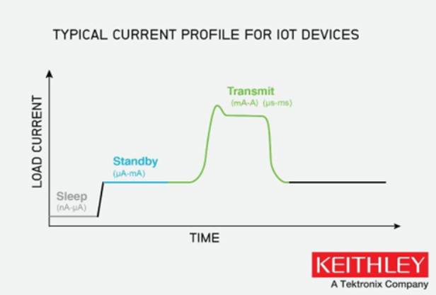 下圖所示為物聯(lián)網(wǎng)設(shè)備的典型電流曲線模式。這些設(shè)備通常處于閑置狀態(tài),從而節(jié)省能源,延長(zhǎng)電池壽命。現(xiàn)代MCU具有多種不同功能的低功耗模式,以降低功耗。喚醒方法可根據(jù)睡眠模式深度,在外部事件發(fā)生時(shí)恢復(fù)功能。
