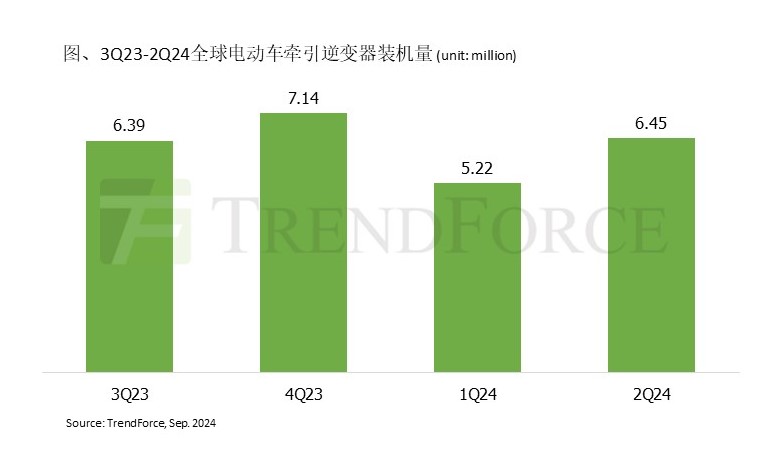 Sep. 5 ---- 根據(jù)TrendForce集邦咨詢最新研究報(bào)告顯示,受混合動(dòng)力車種(含HEV及PHEV)帶動(dòng),2024年第二季全球電動(dòng)車牽引逆變器裝機(jī)量達(dá)645萬(wàn)臺(tái),季增24%。其中,PHEV的裝機(jī)量較前一季增長(zhǎng)26%,在各類電動(dòng)車動(dòng)力模式中增幅最大,BEV裝機(jī)量則以季增18%位居第二。