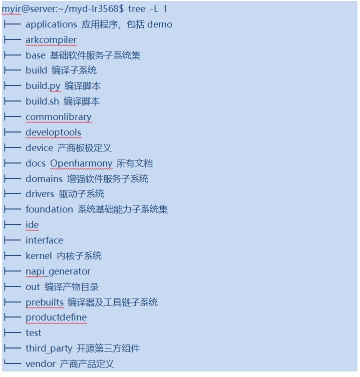 MYD-LR3568的u-boot, kernel和Openharmony系統(tǒng)以及應(yīng)用程序各個(gè)部分的源碼都完全開(kāi)放,Openharmony有部分源碼與Linux源碼共用,用戶(hù)可以從Linux 網(wǎng)盤(pán)“04-Sources”目錄獲?。?