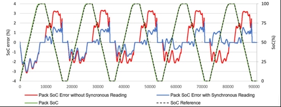 圖2顯示了同步讀取的單極輸出誤差比不同步讀取的誤差要低得多,特別是在幾個(gè)放電周期之后。這些結(jié)果是通過?MPF42791 綜合了ESR檢測(cè)和熱建模。