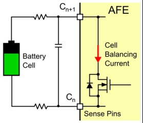 被動(dòng)平衡是最常見的平衡電池電壓的方式,它需要放電最多的電池,直到它們都有相同的電荷。在AFES中,被動(dòng)的細(xì)胞平衡可以在外部或內(nèi)部實(shí)現(xiàn)。外部平衡允許更大的平衡電流,但也增加了BOM(見圖4)。