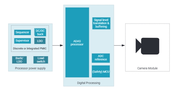 系統(tǒng)中的SoC(片上系統(tǒng))需要高效的電源來執(zhí)行支持ADAS功能的各種處理任務,例如視覺預處理、深度和運動加速以及AI網(wǎng)絡處理。設計ADAS前置攝像頭時存在四個主要電源問題。