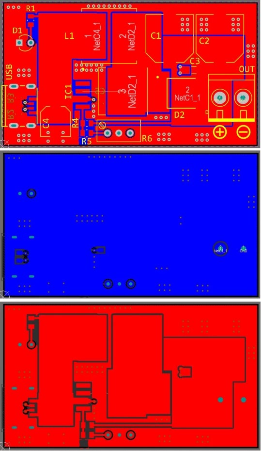 示意圖和電路板已經設計使用了?PCB ,本文利用SDL1020-E直流負載、VEVorSC240M熱成像相機和SINVED1104XE示波器對輸出電壓穩(wěn)定性、熱應力和輸出噪聲進行了測試。變換器的電路板布局遵循幾種設計規(guī)則,如實現功率平面、縫合通道和地面路徑的低阻抗。該輸入連接器是一個5aUSB類型的C,這使一個方便用戶的板,現在的便攜式應用。