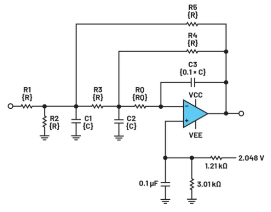 標(biāo)準(zhǔn) ADC 驅(qū)動(dòng)器具有大量可用于可靠設(shè)計(jì)程序的實(shí)驗(yàn)數(shù)據(jù)樣本。缺乏實(shí)驗(yàn)室數(shù)據(jù)來指導(dǎo)驅(qū)動(dòng) ADC 的低通濾波器的設(shè)計(jì)。本文介紹了一種結(jié)合了模擬低通濾波、信號(hào)壓縮和 ADC 驅(qū)動(dòng)器的 LPF 驅(qū)動(dòng)器電路(見圖 2)。