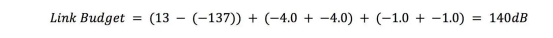 應(yīng)從鏈路預(yù)算中至少減去 6dB,以便為實(shí)際條件和操作穩(wěn)健性提供余量。因此,在此示例中,最大范圍內(nèi)的傳播損耗約為 134 dB。