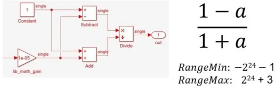 一個(gè)簡單的表達(dá)式,如(1-A)/(1+A),如果需要在高動(dòng)態(tài)范圍內(nèi)實(shí)現(xiàn),可以通過使用單精度浮點(diǎn)自然地進(jìn)行翻譯(圖2)。