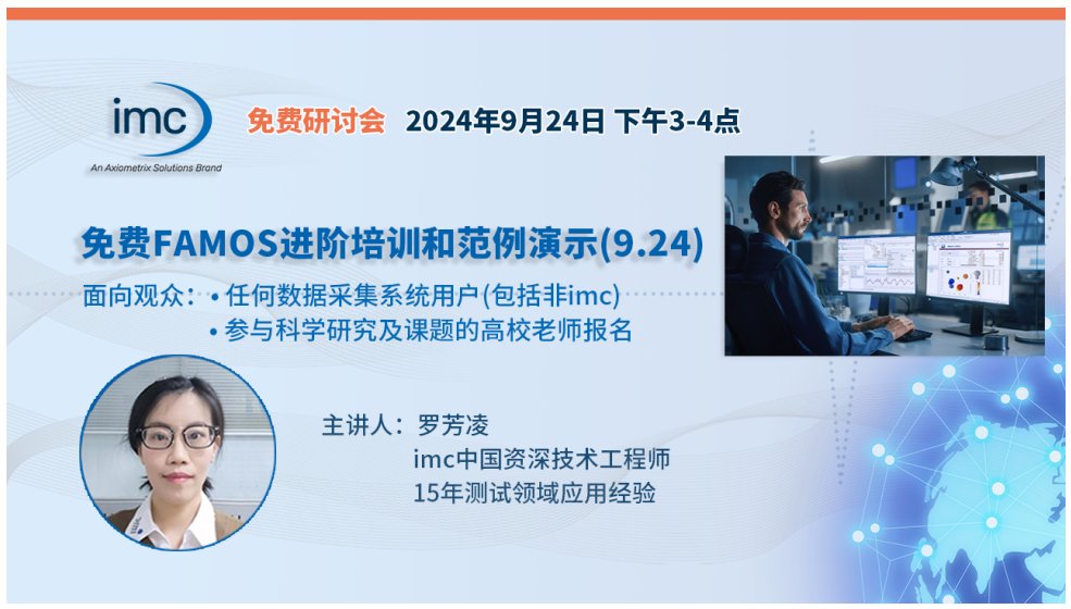 對于試驗數據的后處理分析,通過使用FAMOS可有效提高工作流程效率,且操作簡便。最新版imc FAMOS 2024 通過配備“全新助手和向導”、多樣化的數據導入、分析與可視化、全面兼容 Microsoft 365(office)等功能來支持測試工程師、研究人員和技術人員的產品創(chuàng)新。為“新質生產力“提供高效測試工具,幫助中國高校學生快速入門,為本土新能源汽車、標準動車組、民用客機、工程機械等先進工業(yè)裝備的測試工程師賦能, imc 中國技術團隊將開展一系列免費培訓和范例演示活動。