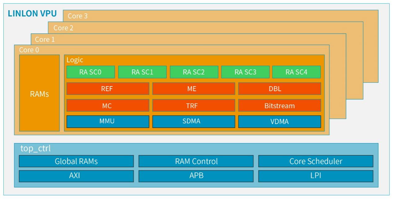 作為國(guó)內(nèi)首批同時(shí)支持H.266標(biāo)準(zhǔn)的編碼及解碼視頻處理器,“玲瓏”V510/V710 VPU采用了多核多格式編解碼融合的可編程處理架構(gòu),單核的編碼或解碼性能可達(dá)到每秒4K60幀,根據(jù)端、邊、云等不同場(chǎng)景需求,分別提供1-4核、4-8核等多種配置。在大幅節(jié)省存儲(chǔ)空間及帶寬成本的同時(shí),“玲瓏”V510/V710 VPU還能輕松按需配置,確保系統(tǒng)性能、功耗和面積的最佳平衡。