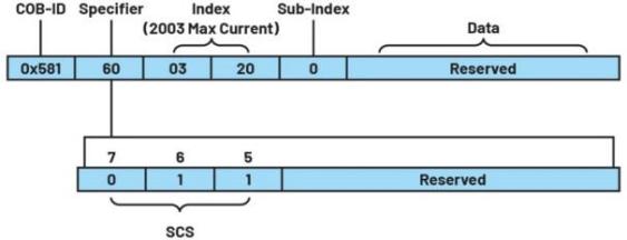 服務(wù)器響應(yīng):0x581:60 03 20 00 00 00 00(圖6)。