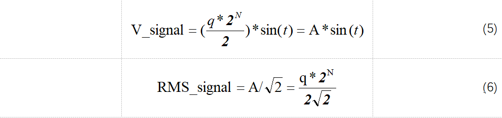 對(duì)于一個(gè)滿量程輸入的正弦信號(hào)見(jiàn)公式(5),根據(jù)公式(5)可以求得公式(6)
