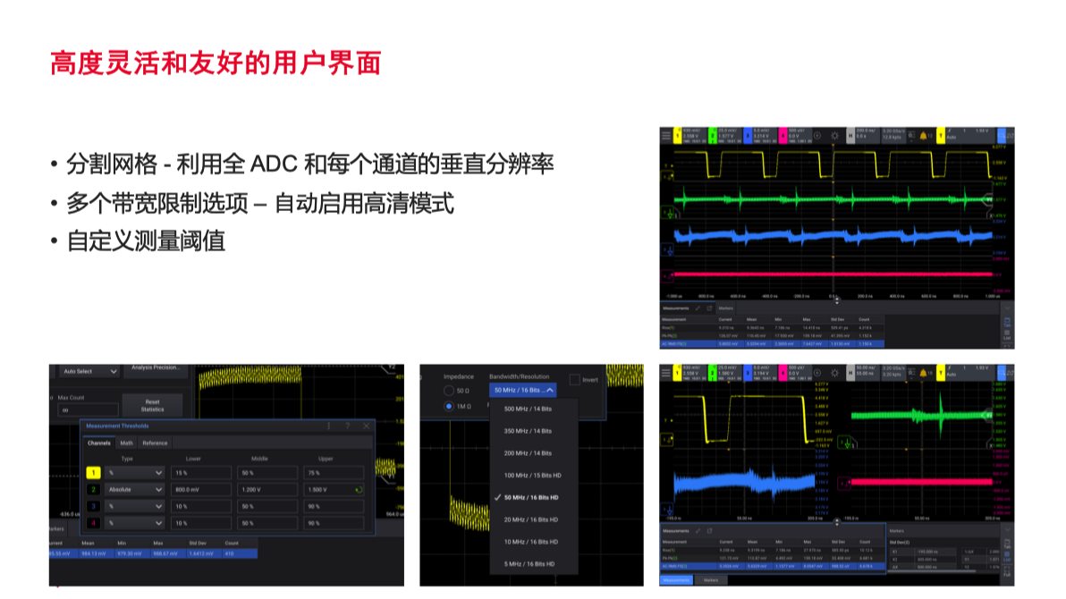 對(duì)通用示波器而言,其實(shí)在軟件能力上的要求也是非常高的。因?yàn)橥ㄓ檬静ㄆ髅媾R的行業(yè)是多樣化的、使用的人群也是千差萬別,如何幫助這部分開發(fā)者來加速完成測(cè)試,捕捉到自己需要的波形,也就更需要智能的軟件能力的支持。這包括了自動(dòng)化的量測(cè)和分析、故障檢測(cè)和調(diào)試工具、數(shù)據(jù)的存儲(chǔ)和共享、實(shí)時(shí)數(shù)據(jù)處理和圖表、用戶界面的友好程度等。