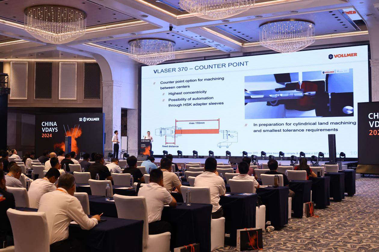 2024年9月20日,江蘇太倉(cāng)——全球領(lǐng)先的工具加工機(jī)床制造商孚爾默(VOLLMER)集團(tuán),在其位于江蘇太倉(cāng)的生產(chǎn)基地舉辦了大型的技術(shù)開放日,這是集團(tuán)延續(xù)數(shù)年、極具盛譽(yù)的技術(shù)交流活動(dòng)VOLLMER VDays再度來(lái)到中國(guó),以此盛會(huì)慶祝孚爾默在華二十周年。VOLLMER China VDays以技術(shù)演講、機(jī)床演示、典型工具切削等豐富形式全面展現(xiàn)了孚爾默產(chǎn)品技術(shù)與本地應(yīng)用實(shí)力,同時(shí)還攜手制造生態(tài)合作伙伴企業(yè),深度聚焦工具全工藝鏈加工方案。活動(dòng)吸引了用戶企業(yè)代表、合作伙伴、研究機(jī)構(gòu)專家等約130名嘉賓交流參與。