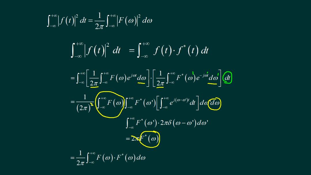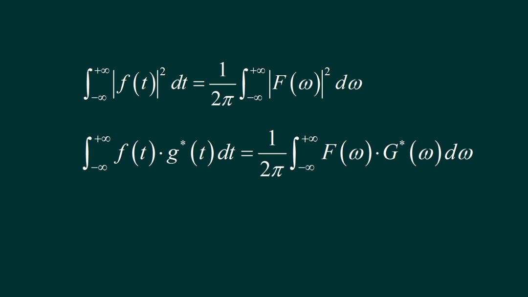 ??這樣便可以得到一個(gè)更加一般的公式,也就是,任意兩個(gè)信號的時(shí)域復(fù)內(nèi)積,等于它們頻域信號的復(fù)內(nèi)積。這個(gè)公式也被稱為 帕塞瓦爾定理。