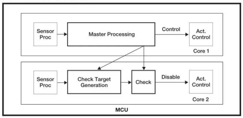 圖三、主從式處理器驗(yàn)證方式(圖片來源:《車規(guī)級(jí)處理器中的LockStep技術(shù)》)
